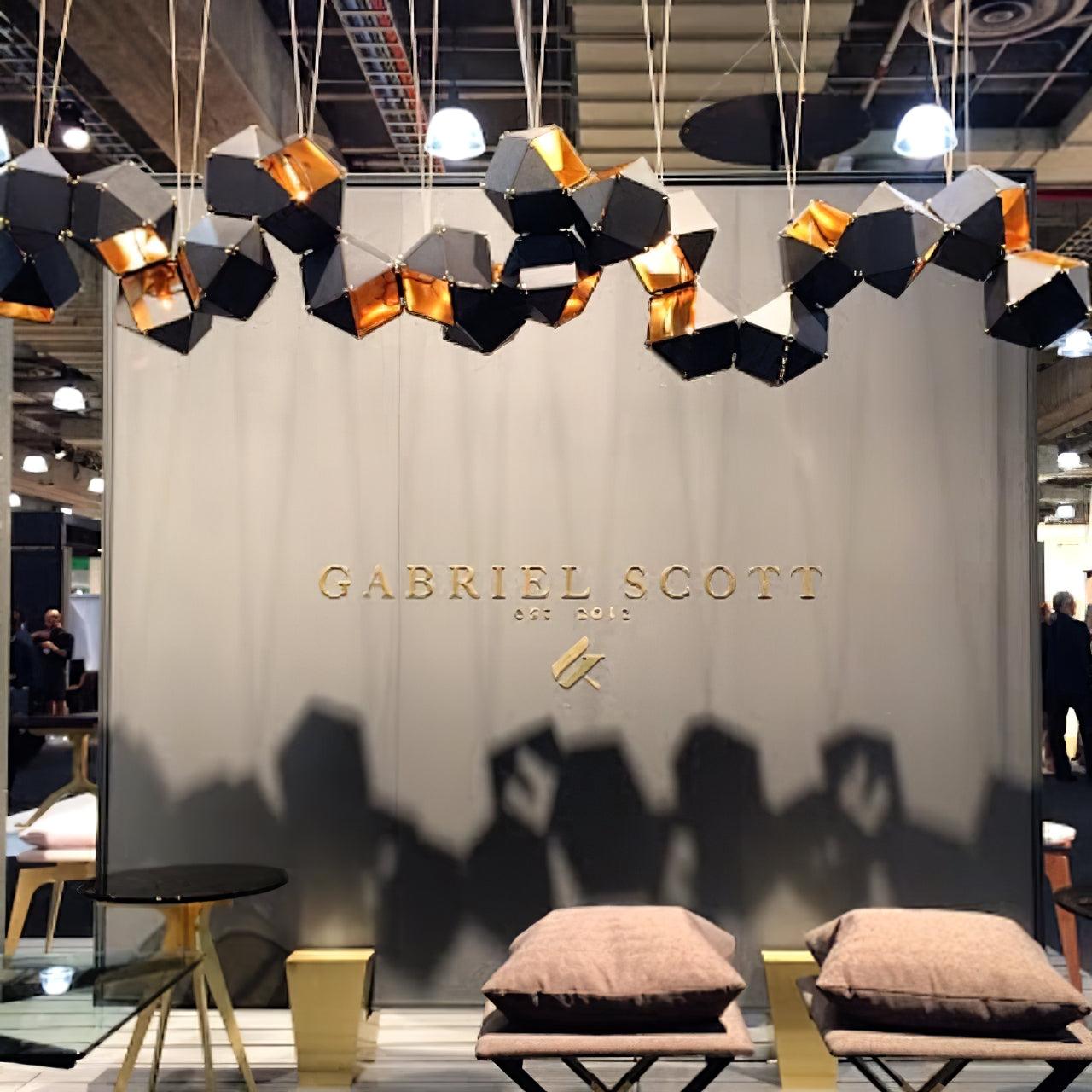 A fixture of metallic proportion. the signature WELLES is a modern piece that showcases expert artistry. Hollowed metallic polygons branch out into a modular system of interconnected configurations for a stunning optical illusion. With its endless possibilities. the WELLES floats in the air emitting a cloud of soft light through its multifaceted. sculpturally innovative silhouette.