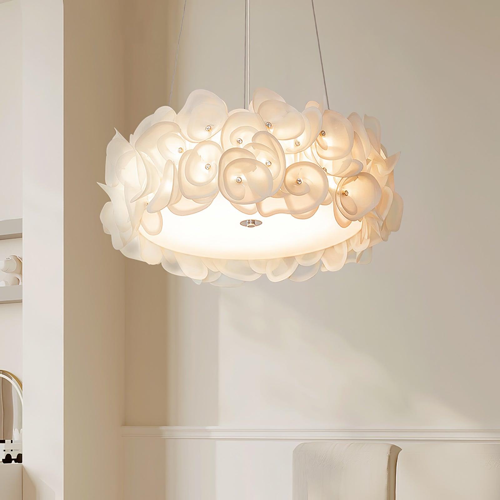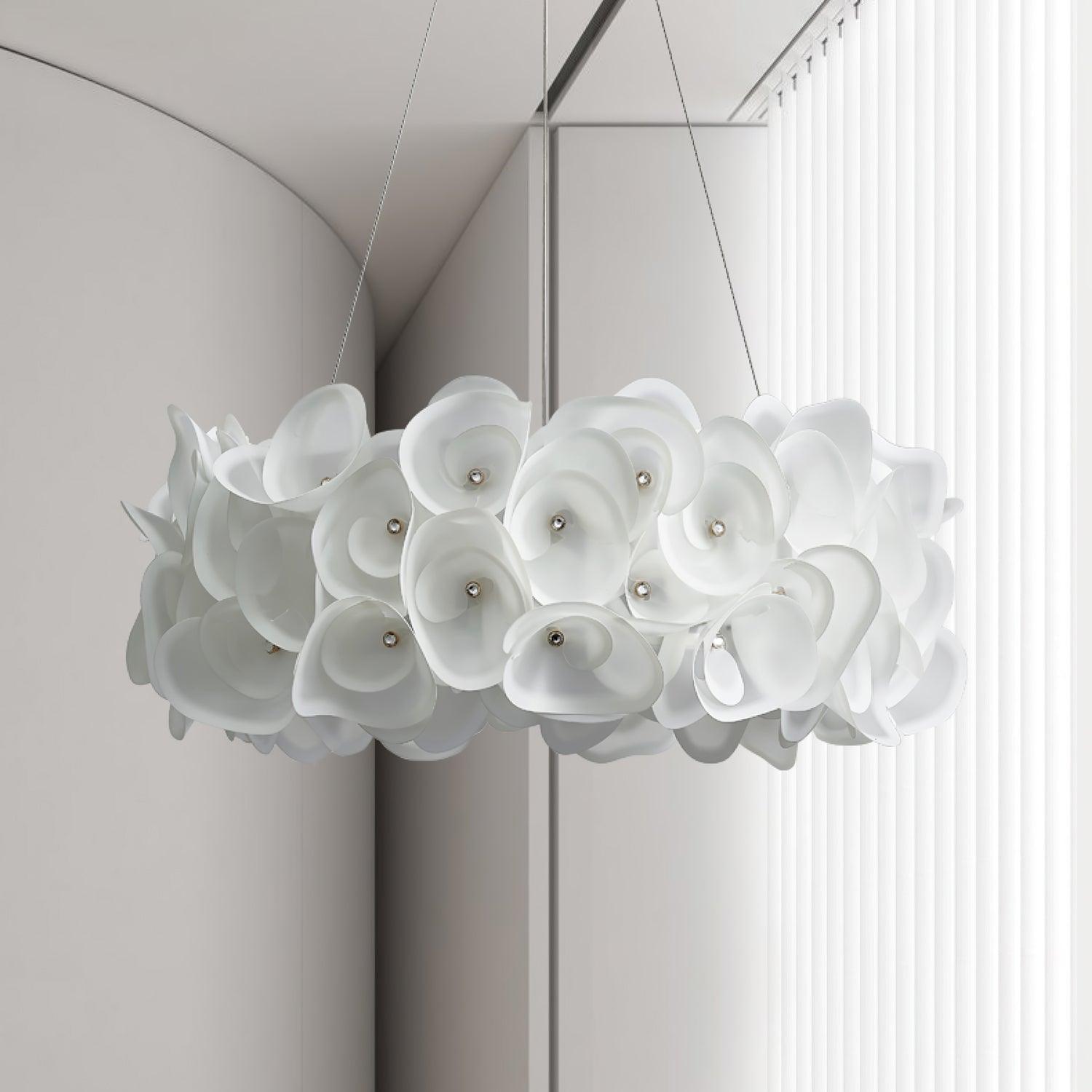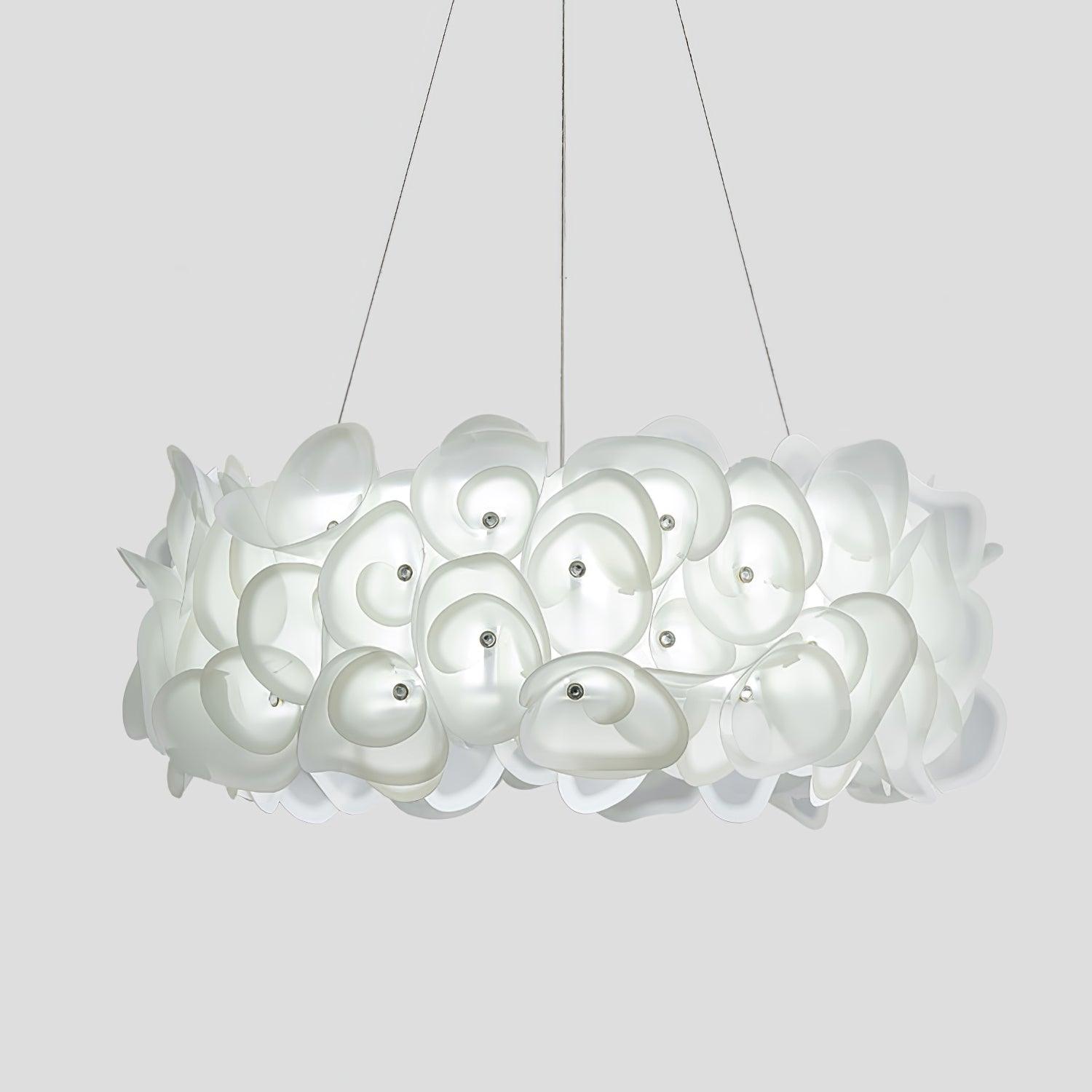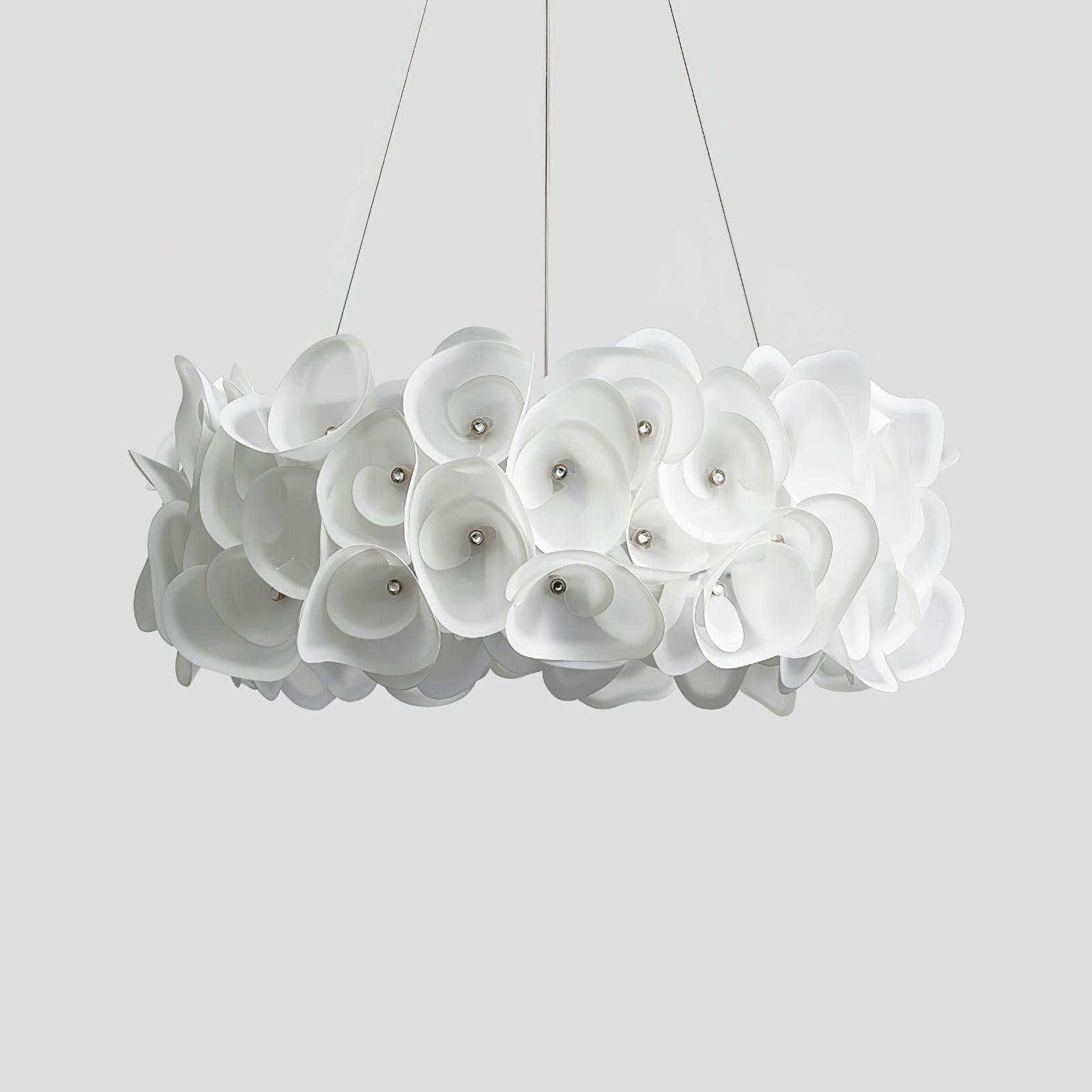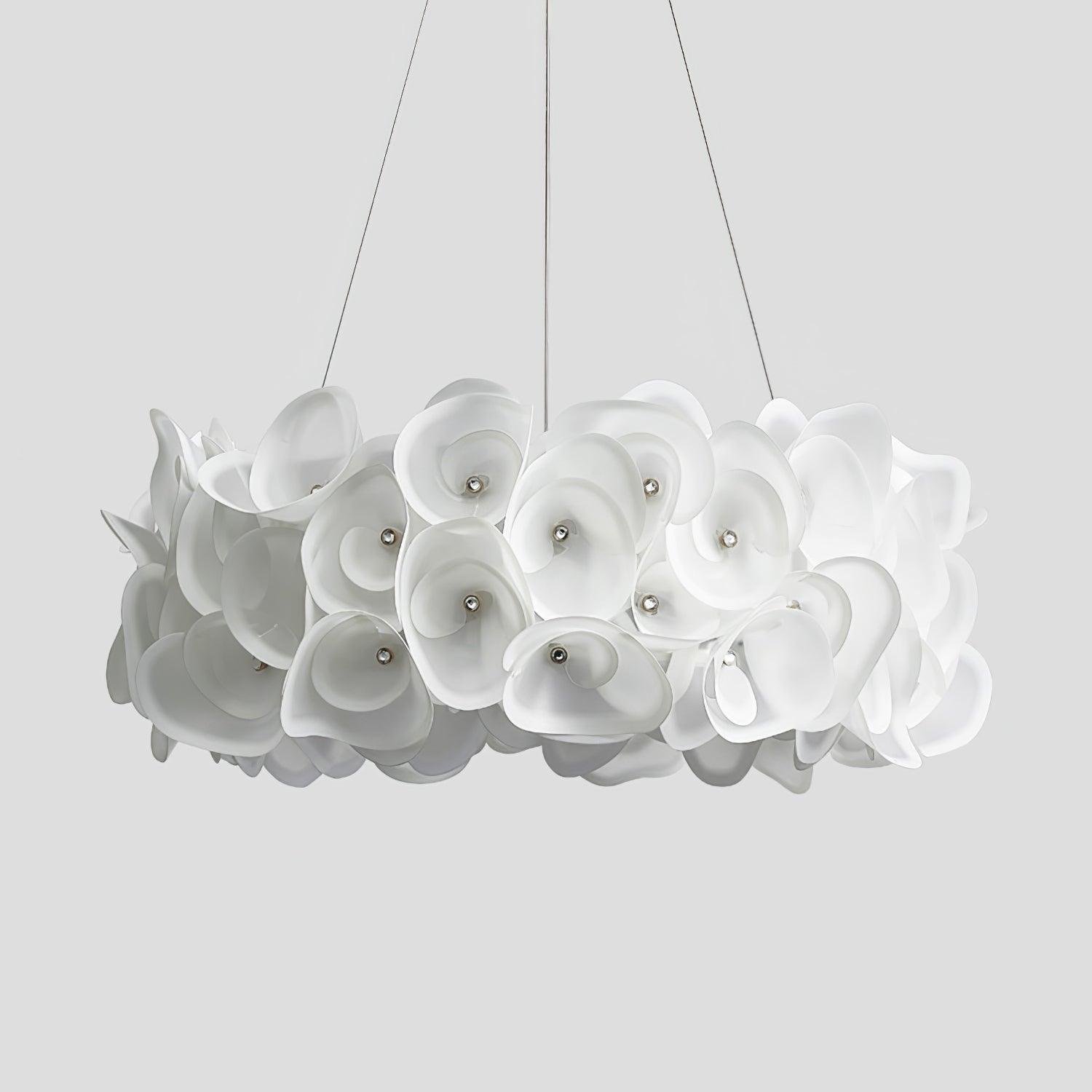 Add style and unique lighting to any room with this stunning White Hydrangea Pendant Lamp. Handcrafted with cold-cut metal. its petal shapes create an intriguing glow and mesmerizing shadows that will captivate onlookers. Crafted with an artful silhouette. this delicate pendant lamp will be the perfect addition to your home.