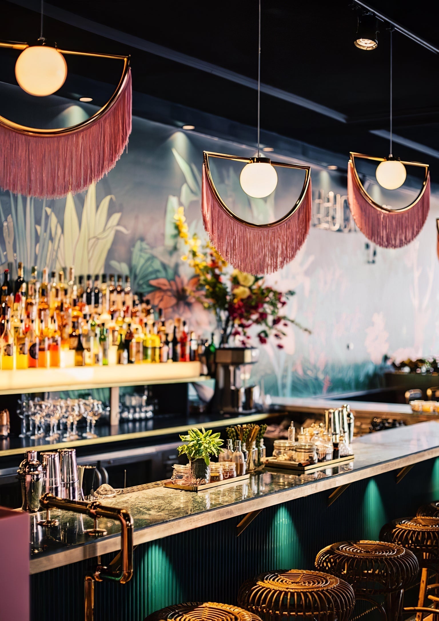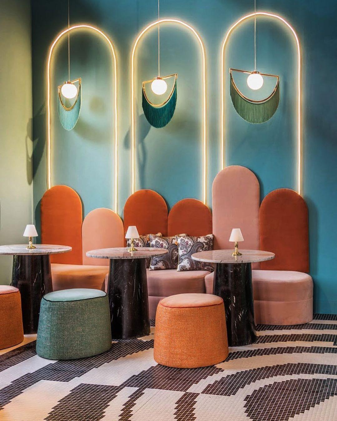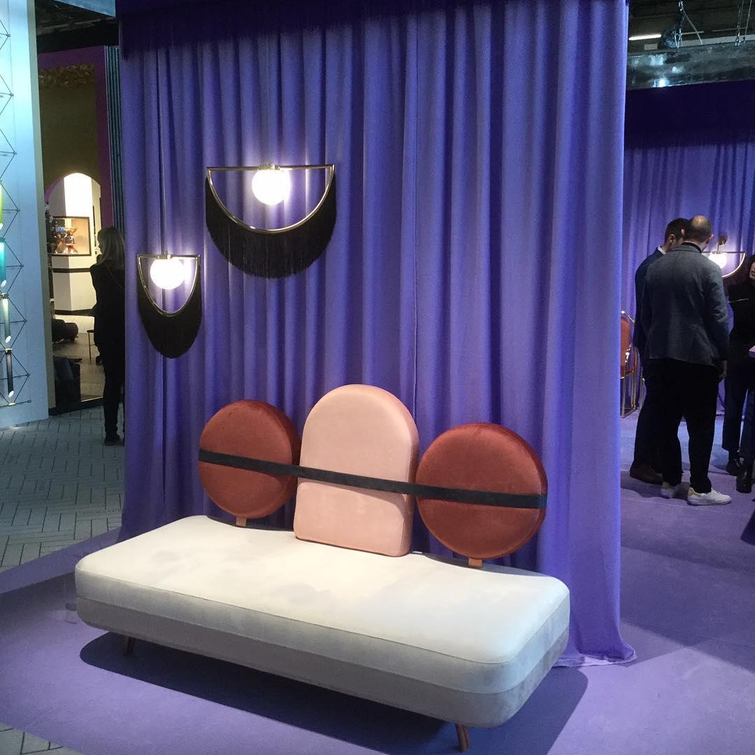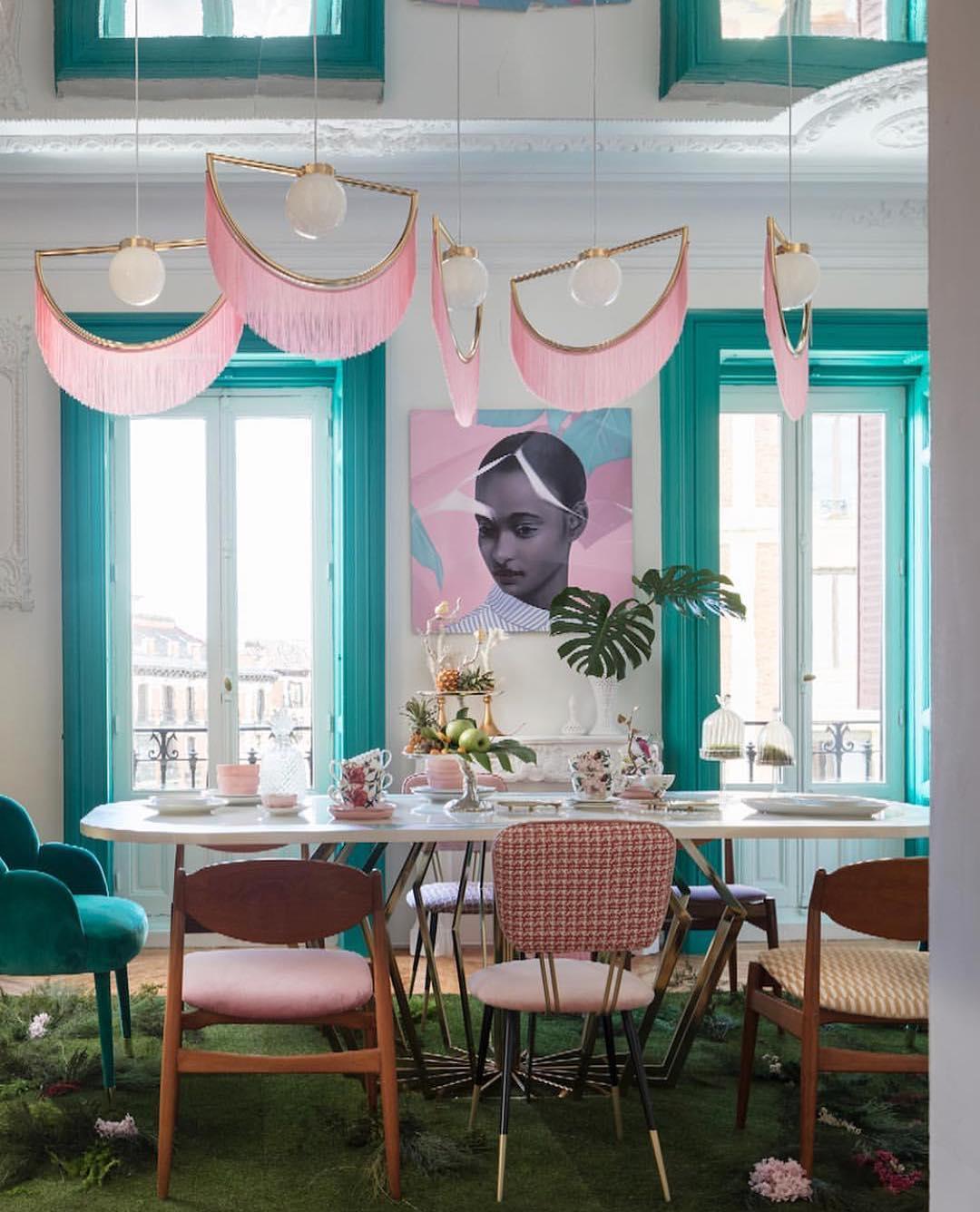 A post-modern inspiration for this glamour and retro pendant. A nod to the past and the present. Wink symbolizes an inverted eye. Decorated with colorful fabric fringes. this sophisticated and bohemian pendant revisits the boudoir theme and 30s style with a great deal of modernity.