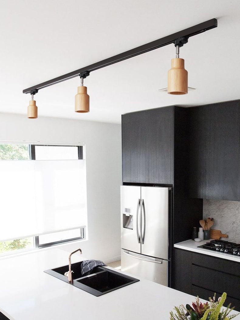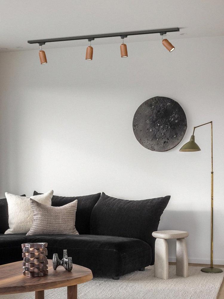 This modern industrial steel track fixture features adjustable light heads that offer you maximum flexibility. The wood canopy adds quaint and original touch to this refined and sophisticated lighting. The ceiling lamp could be converted to a wall-mount lamp. This functional artwork can definitely be the statement piece of your room.